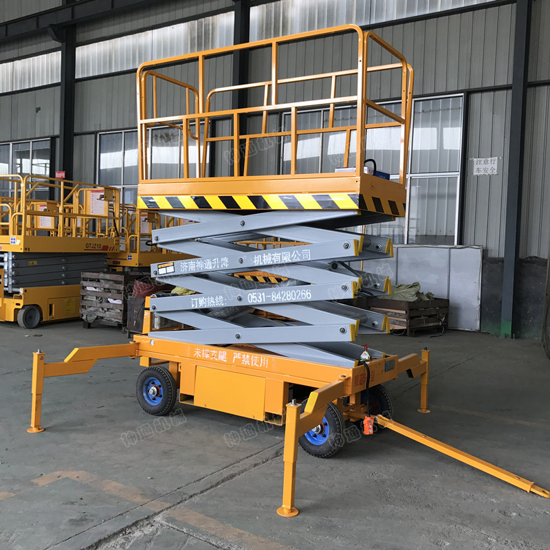 產(chǎn)品介紹:牽引式移動升降機(jī)為人工移動式,具有移動靈活、升降平穩(wěn)、操作方便等特點。移動式液壓升降平臺其剪叉式結(jié)構(gòu),使平臺具有較高的穩(wěn)定性和較高的承載能力,而寬大的作業(yè)臺面又可同時容納多人作業(yè)。